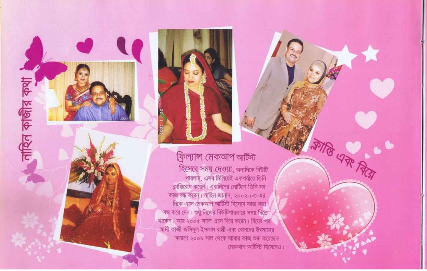 Nahin Naureen Jahan (Nahin Qazi) 37 years of career Convent School up to 1984. When the girls of this country are not allowed to leave the house or work. At that time the society fought with everyone. This advertising world came and started working in that advertising world with the help of Bangladeshi makeup artist Afzal Hossain and spent 37 years with honor. His work has spread nationally and internationally. He took training in various countries including Bombay, India. And in various TV channels, native cosmetics are working on how to make use of cosmetics used by mother aunts.